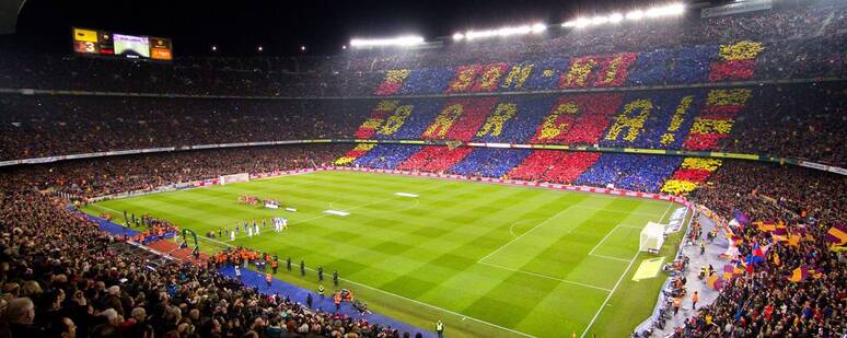 สโมสรไม่เคยมีสปอนเซอร์ให้กับสนามกีฬาของพวกเขา แต่ตั้งใจที่จะขายสิทธิ์การตั้งชื่อต่อไปเพื่อช่วยสนับสนุนการพัฒนาของ Espai Barça – ศูนย์กีฬาและโครงการปรับปรุงสนามกีฬา